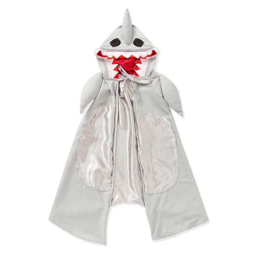 Capa Fantasia Tubarão Dani Lessa CinzaFantasia de Tubarão para transformar a brincadeira dos pequenos e pequenas em uma grande aventura. Boa diversão. Confeccionada em helanca e cetim. Amarração na frente ajustável Ficha técnica- Material: Cetim e Helanca- cor: cinza- amarração: Frontal- Tamanho único. Serve para crianças de até 7 anos. - Medidas: Altura sem contar o capuz 70 cm- Marca: Dani Lessa