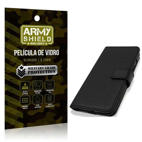 Kit Capinha Carteira + Película de Vidro 3D - Armyshield A capa carteira é para quem gosta de elegância, estilo e proteção. Muito mais que uma capa funciona também como uma carteira com espaço para colocar cartão. Protege totalmente seu aparelho de quedas e riscos. produzido em material sintético. Película de vidro 3D Blindada - Armyshield, traz o que há de mais moderno quando se trata de proteção de telas, com uma espessura de 0,33mm garante total proteção contra riscos e quedas e trincos. Proteção para o seu celular é com a Armyshield Ean: 7898945660839