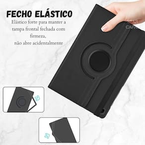 A principal característica desta capa é a sua função giratória, que permite que você gire o seu tablet em 360 graus, tanto na posição horizontal quanto vertical. Isso proporciona uma experiência de visualização versátil e conveniente, seja para assistir a vídeos, fazer videochamadas, ler ou utilizar o tablet em qualquer posição desejada.