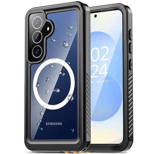 Capa impermeável para Galaxy S25 Plus - *[Compatível com MagSafe]: a capa para Samsung Galaxy S25 Plus (versão 2025) é compatível com todos os acessórios MagSafe e carregadores sem fio de terceiros com certificação Qi. Garante quase 0% de perda de energia durante o carregamento sem fio, tornando o carregamento mais rápido e seguro e melhorando ainda mais a experiência de carregamento sem fio - *[Excelente IP68 à prova d'água]: a capa para Samsung S25 Plus é resistente à água, poeira, sujeira, neve, derramamentos e respingos de líquidos do dia a dia. Além disso, o design lavável garante uma limpeza fácil e mantém o telefone e a capa sempre limpos e parecem novos. A capa é perfeita para qualquer atividade subaquática, esportes ao ar livre e uso diário como natação, mergulho, surf e muito mais. Dicas: verifique se todos os plugues estão selados antes de usar - *[Protetor de tela e lente embutido]: capa S25 Plus especialmente com protetor de tela HD embutido. A película protetora de tela de 0,33 mm mantém 99,99% de sensibilidade de resposta e nunca arranha. A capa da câmera oferece proteção suficiente para as lentes contra alto impacto e traz beleza impecável a todas as fotos. O design elaborado de bordas de 2,5 mm sobre a câmera, molduras de 1,5 mm ao redor da tela na parte traseira oferece proteção extra e abrangente - *[Proteção de corpo inteiro de 360 graus]: a capa à prova de choque S25 Plus é certificada para exceder os padrões de teste de queda de nível militar, sobrevivendo a mais de 4.500 testes de queda de até 3 metros. Seu design exclusivo de absorção de choque de camada dupla e 4 cantos anticolisão dispersam 99% da força de impacto, oferecendo proteção abrangente para o telefone enquanto mantém um apelo estético - *[Qualidade de som autêntico clara]: capa à prova d'água para Galaxy S25 Plus medida precisamente para se ajustar perfeitamente ao alto-falante, botões e recortes. Adota um novo design atualizado, você pode abrir o plugue no orifício de som inferior e a tampa da porta de carregamento ao mesmo tempo para receber uma chamada melhor, sem se preocupar com a capa afetar o volume, desfrutar de um tempo de música maravilhoso e uma qualidade de chamada mais clara