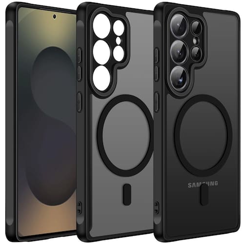 Capaivoler Capa magnética para Samsung Galaxy S25 Ultra 5G de 6,9 polegadas [compatível com Magsafe] [proteção de nível militar de 4,8 metros] Capa de carregador magnético para S25 Ultra, capa traseira translúcida fosca para celular - preto fosco - [Ajuste perfeito] Projetada para caber perfeitamente no modelo Samsung Galaxy S25 Ultra de 6,9 polegadas sem adicionar volume extra. Observe que esta capa não é compatível com o S25 Plus/S25+/S25. Os recortes precisos fornecem acesso total à câmera, alto-falante, botões e portas. - [Fixação magnética segura] Fixa-se facilmente ao carregador magneticamente, garantindo uma conexão segura. Uma vez encaixada, ela permanece no lugar sem escorregar. Compatível com todos os acessórios MagSafe, como carteiras, suportes de anel e power banks. - [Parte traseira translúcida fosca] A parte traseira da capa possui um acabamento fosco, proporcionando uma aderência confortável enquanto evita manchas como impressões digitais e resíduos de óleo. O design translúcido permite que você ainda mostre o logotipo elegante do seu dispositivo. - [Carregamento sem fio eficiente] Os ímãs precisamente alinhados permitem um carregamento sem fio mais rápido e conveniente. Basta deixar a capa no seu telefone e conectar o carregador compatível com MagSafe ou colocá-la no carregador certificado Qi para carregamento rápido. - [À prova de choque e proteção] Construída com uma moldura de TPU flexível e uma parte traseira de policarbonato antiarranhões, esta capa oferece proteção de alto nível contra choques e quedas. Bordas elevadas ao redor da tela e da lente da câmera fornecem proteção adicional para o seu dispositivo.