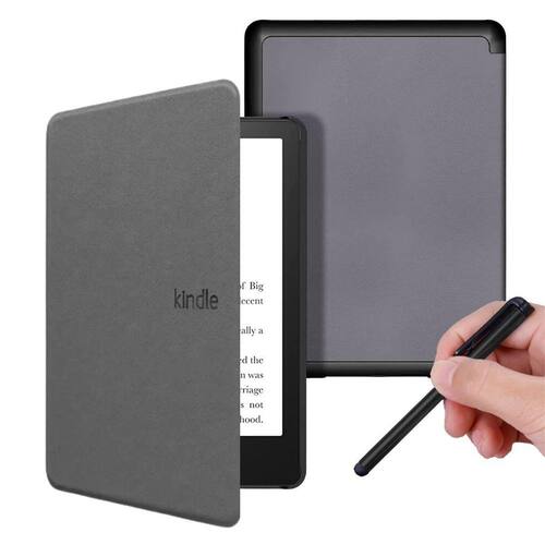 Capa magnética para new kindle 12 básico 6.0 rs23cv + caneta Cor: cinza com revestimento interno de microfibra e toque macio, sua tela estará sempre livre de riscos. O fechamento magnético é mais que um detalhe: ele aumenta a segurança, enquanto as bordas reforçadas garantem um encaixe perfeito e firme, prevenindo quedas e absorvendo impactos.