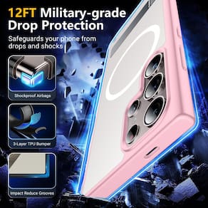 SPIDERCASE Capa magnética para Samsung Galaxy S24 Ultra, [3 formas de suporte] [proteção contra quedas de grau militar] com suporte invisível à prova de choque, capa fina para S24 Ultra 5G, rosa - ?Capa para S24 Ultra?SPIDERCASE projetada para Samsung Galaxy S24 Ultra de 6,8 polegadas, não serve para outros modelos, verifique o modelo do seu telefone antes de comprar. O corte preciso do orifício e os botões sensíveis garantem acesso mais fácil a todos os botões e funções. - [Suporte funcional e invisível] O suporte da capa para Samsung Galaxy S24 ultra é dobrável, resistente e construído para durar, com suporte prático integrado feito de alumínio de grau aeroespacial leve e sólido, oferecendo uma experiência robusta e flexível no modo retrato, paisagem ou teleconferência. Permite que você obtenha um ângulo de visualização mais confortável. Reduza a frequência de olhar para a tela do telefone para evitar machucar suas costas e pescoço. - [Magnético super forte] Com um anel magnético integrado que se alinha perfeitamente com carregadores magnéticos, esta capa oferece uma fixação mais forte e velocidade de carregamento mais rápida. Compatível com todos os acessórios magnéticos e carregadores sem fio (como carregador sem fio de carro, carregadores sem fio, carteiras magnéticas, etc.). - [À prova de choque de grau militar de 3,5 m] aprovado em testes militares de até 3 m, tem uma parte traseira escovada de policarbonato resistente e amortecedores de borracha flexível que fornecem forte amortecimento para quedas diárias. Airbag poderoso de dispersão de impacto em 360° integrado e tecnologia de canto resistente a impactos de 4 cantos. O design pequeno de bordas de 1,5 mm sobre a câmera e molduras de 1,5 mm sobre a tela evitam poeira e arranhões. - [Design fino e aderência confortável] Esta capa fina para Samsung Galaxy S24 Ultra traz maior portabilidade e aderência mais firme, fácil de manter limpa, anti-impressões digitais e traz a sensação excepcional de toque sedoso, sem volume e sem derrapagem para caber facilmente no bolso.