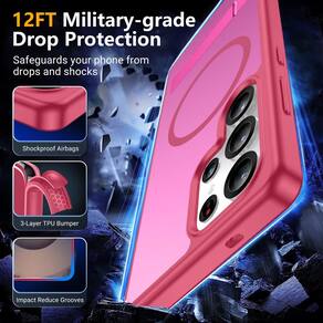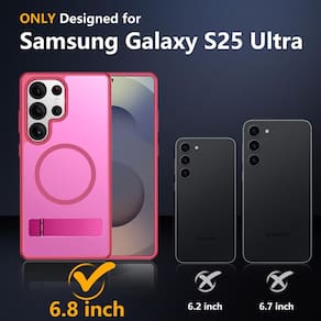 Capa magnética SPIDERCASE para Samsung Galaxy S24 Ultra, [3 suportes] [proteção contra quedas de nível militar] com suporte invisível, capa fina à prova de choque para S24 Ultra 5G, rosa vermelha —?Capa para S24 Ultra?Capa SPIDERCASE projetada para Samsung Galaxy S25 Ultra de 6,9 polegadas, não serve para outros modelos. Verifique o modelo do seu telefone antes de comprar. O corte preciso do orifício e os botões sensíveis garantem um acesso mais fácil a cada botão e função. - [Suporte funcional e invisível] O suporte da capa ultra para Samsung Galaxy S25 é dobrável, resistente e feito para durar, com suporte prático embutido feito de alumínio leve e sólido de nível aeroespacial, oferecendo uma experiência robusta e flexível nos modos retrato, paisagem ou teleconferência. Ele permite que você obtenha um ângulo de visão mais confortável. Reduza a frequência de olhar para a tela do telefone para evitar machucar as costas e o pescoço. - [Super Strong Magnetic] Com um anel magnético embutido que se alinha perfeitamente com os carregadores magnéticos, esta capa oferece uma fixação mais forte e uma velocidade de carregamento mais rápida. Compatível com todos os acessórios magnéticos e carregadores sem fio (como carregador sem fio para carro, bancos de energia sem fio, carteiras magnéticas, etc.). - [12 pés à prova de choque de nível militar] Aprovado em testes militares de até 12 pés, ele tem uma parte traseira resistente escovada em PC e amortecedores de borracha macia e flexível que fornecem um forte amortecimento para quedas diárias. Airbag de dispersão de impacto poderoso e versátil de 360° integrado e tecnologia de canto resistente a impactos de 4 cantos. O design minúsculo de lábios de 1,5 mm sobre a câmera e molduras de 1,5 mm sobre a tela evita que a tela e a câmera sofram poeira e arranhões. - [Design fino e aderência confortável] Esta capa fina para Samsung Galaxy S25 ultra oferece maior portabilidade e aderência mais firme, fácil de manter limpa, evita impressões digitais e traz uma sensação excepcional de toque sedoso, sem volume e sem derrapagem, cabendo facilmente no bolso.