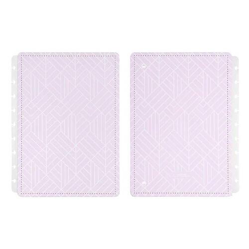 Esta capa e contracapa são construídas com rigidez para proteger seus materiais. Cada conjunto inclui uma folha de instruções detalhadas para uso e manuseio, além de espaço no verso para refis e acessórios da marca. Há também uma folha de identificação com calendário para manter tudo organizado.