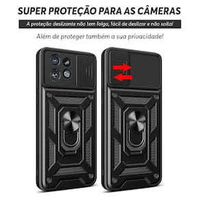 A capa também conta com um slide cover, que oferece maior proteção para as câmeras do seu Motorola Moto X40, além de garantir mais privacidade. Todas as funções e botões do seu dispositivo funcionam normalmente com essa capa.