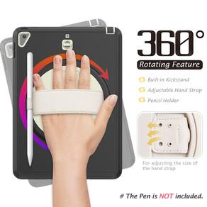 [Ajuste do modelo] Exclusivamente projetado compatível com 9,7 polegadas 2017 2018 ( 6ª / 5ª Geração) / Air 2 / Pro 9.7; Número do modelo: A1893 / A1954 / A1822 / A1823 / A1673 / A1674 / A1675 / A1566 / A1567. [Proteção] Proteção de 3 camadas combinada com "tampa frontal do PC com protetor de tela embutido" + "tampa traseira do PC rígido" + "invólucro externo de silicone macio". Fornece uma capa protetora para o seu tablet para evitar quedas/solavancos/arranhões acidentais. [Suporte giratório] A tampa traseira com uma plataforma giratória de 360 graus embutida, um suporte dobrável está escondido no interior. Quando o suporte é estendido, ele pode ser girado 360 graus com a plataforma giratória para alcançar diferentes ângulos de suporte. Este estojo vem com função de porta-canetas. [Alça de Mão/Ombro] O giro traseiro incorpora uma alça de mão, quando você coloca a mão na alça, você pode agarrar firmemente o centro de gravidade do seu tablet. Alça de ombro ajustável adicional de até 49 polegadas, pode ser anexada ao estojo para transportar seu dispositivo.