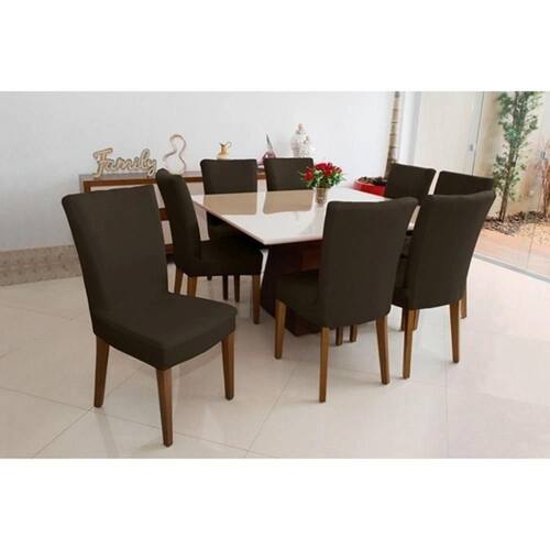 Capa Para Cadeira Lisa Kit 4 Lugares Malha - Marrom Capa Para Cadeira De Malha gel