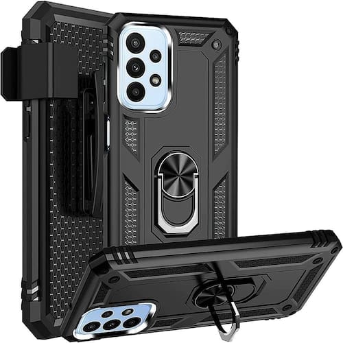 Mantenha seu Samsung Galaxy A23 5G protegido com esta capa preta Sahara CP00228 com suporte militar. O clipe de cinto facilita o transporte, enquanto o design leve e anatômico minimiza o volume. Esta capa resistente Sahara com suporte militar apresenta um design ergonômico de botões fechados para operação suave, e a construção em TPU triplo endurecido e plástico resiste ao amarelamento e estiramento.