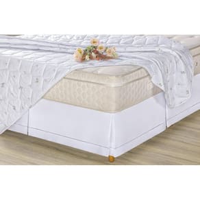 Contém 02 peças 01 Saia para Cama box Queen 2,00m x 1,60m x 0,35m de altura 01 Capa Impermeável para colchão 1,58m x 1,98m x 0,30m de altura. Composição da Saia: Tecido Percal 100% algodão Acabamento em Ponto Palito Composição da Capa: Tecido 100% poliéster Enchimento 100% poliéster Forro PVC A Capa veste o colchão como um lençol de elástico, sendo assim mais prática e durável. A Saia veste todo o box, então além de embelezar protege todo o box. Tecido Extra resistente. Deixa seu colchão como novo. Obs. Primeira foto da Capa de Colchão e na Segunda o modelo da Saia para Box com babado de Ponto Palito. Marca: Nathalia Enxovais