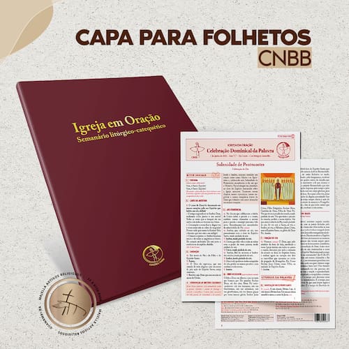 Capa litúrgica do folheto Igreja em Oração: além de proteger seus exemplares, elas os deixarão com a aparência da exclusiva Bíblia Sagrada com Tradução Oficial da CNBB, visto que foram desenvolvidas com a mesma identidade visual. São produzidas em capa dura, revestida em plástico PVC e impressa com letras douradas.Peso:,229Páginas: Formato:22 X 29,5cmAcabamentos: Papelão com revestimento em PVC