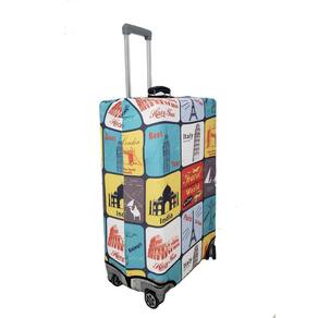Capa para mala de viagem estampa selos de viagem tamanho m As capas protegem sua mala contra danos, arranhões e sujeira durante a viagem, além de ajudarem na fácil identificação das mesmas.As capas são laváveis e reutilizáveis. Disponíveis nos tamanhos p, m e g. Características:Produto: capa para mala de viagem Material: poliéster e spandex Tamanho capa p: Altura: 48cm esticado ate 53cm Largura: 32cm esticado até 35cm Profundidade: 20cm esticado até 23cm Tamanho capa m: Altura: 58cm esticado ate 63cm Largura: 39cm esticado até 42cm Profundidade: 23cm esticado até 26cm Tamanho capa g: Altura: 65cm esticado ate 70cm Largura: 47cm esticado até 50cm Profundidade: 26cm esticado até 29cm Marca: Mimos E Viagens