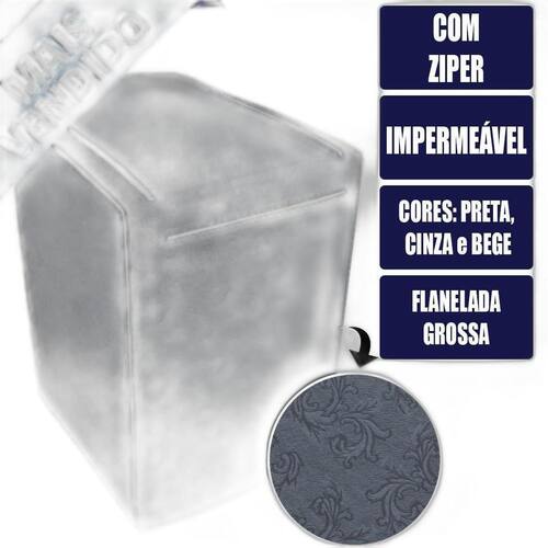 Capa para Máquina de Lavar Electrolux Brastemp Consul com Ziper 10, 11, 12, 13, 14, 15, 16, 17kg Cor: Cinza Grafite Tamanho: P
