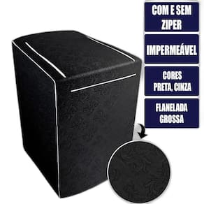 Capa protetora impermeável com zíper para máquinas de lavar Electrolux, Brastemp e Consul de 10 a 17kg. Material sintético flanelado, prática e moderna.