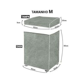 Tampa: 0,62 m l x 0,09 m a frente x 0,20 m atrás x 0,62 m profundidade Saia: 0,62 m l x 0,80 m a x 0,62 m profundidade