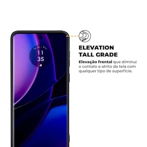 Capa para Motorola Edge 40 com proteção para câmera, design que se adapta perfeitamente ao aparelho, tecnologia Elevation Tall Grade, alça kick stand para inclinação de até 60 graus, alça para prender o aparelho ao bolso.Características