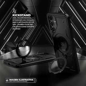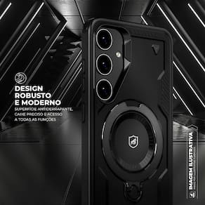 Seu grande diferencial está no anel multifuncional integrado. Além de proporcionar mais firmeza ao segurar o aparelho, reduzindo o risco de quedas acidentais, o anel também pode ser utilizado como suporte de apoio, permitindo assistir vídeos, participar de chamadas de vídeo ou navegar no celular de forma mais confortável em qualquer superfície.