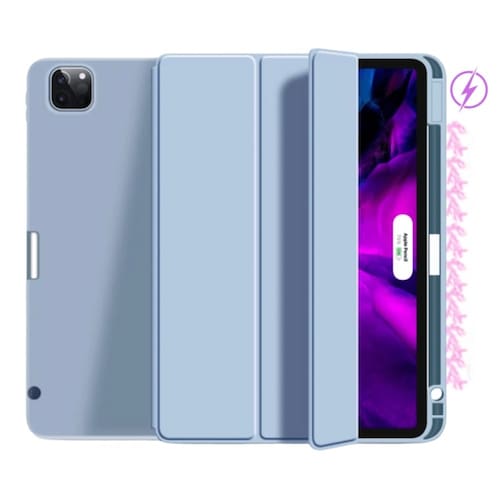 Capa para Pro 11 M2 de 4ª geração (2022) Compartimento magnético para lápis de carregamento * Lembre-se de que, antes de comprar, certifique-se de que o número na parte traseira do corresponda ao seguinte: A2759 - A2435 - A2761 DESCRIÇÃO DO PRODUTO • Cor da capa: celeste • Compartimento para lápis (lápis não incluído): compartimento próximo ao carregamento magnético. Permite que o lápis seja colocado dentro do compartimento • Capa inteligente: quando você abre ou fecha a tampa frontal, sua tela liga ou desliga, respectivamente. • Capa frontal Imanta: ímãs embutidos permitem que você transforme a tampa em um suporte para posicionar seu dispositivo. Além disso, seu material é de microfibra macia que oferece proteção contra quedas e poeira. • Capa traseira de silicone flexível (NÃO RÍGIDA): cantos e botões reforçados oferecem proteção sem impedir o uso.