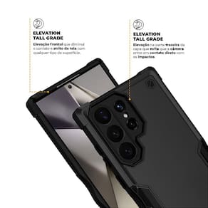 Absorção de choques, ergonomia e bordas elevadas para proteção da tela e câmera.Características