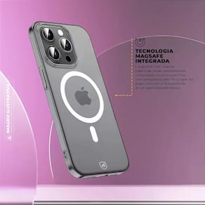 Outro destaque da capa está na tecnologia MagSafe integrada, que cria um anel de ímãs na parte traseira do celular, estabelecendo uma conexão magnética perfeita com carregadores sem fio compatíveis. Isso significa que você nunca mais terá que se preocupar com a posição correta na base de carregamento, pois a Crystal Slim Magsafe garante que seu dispositivo se alinhe de maneira precisa a cada uso, proporcionando uma experiência de carregamento sem esforço.