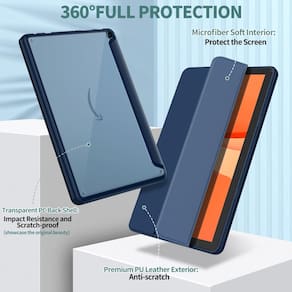 Sanyetral Capa de couro sintético premium com três dobras com função despertar/hibernar automática Oferecemos para você escolher, e você pode escolher uma cor para combinar com seu estilo O suporte especial de três dobras oferece dois ângulos para atender às suas necessidades de visualização e digitação. O ímã integrado oferece função de despertar automática de hibernação, que pode economizar energia, proteger e prolongar a vida útil da bateria do tablet. Nossa capa passou por testes de resistência a choques e pode fornecer proteção de 360° para o seu tablet contra quedas acidentais e arranhões Nossa capa é projetada profissionalmente para que você possa acessar facilmente todas as funções e portas sem remover a capa, tornando-a muito conveniente Leve e conveniente, dificilmente adiciona volume ao seu tablet, basta fechar a capa e colocá-la facilmente na bolsa, retirá-la e usá-la a qualquer hora e em qualquer lugar. Pode ser usada em muitas configurações, levá-la para a escola/academia/piquenique/acampamento/ao ar livre, etc., ótimo valor, escolha de presente maravilhosa para familiares e amigos - ?Compatibilidade com capa para tablet Fire HD 10?Projetada especificamente para o novo Amazon Kindle Fire HD 10 Tablet e Fire HD 10 Kids e tablet Fire HD 10 Kids Pro (13ª geração, versão 2023), incompatível com iPad Nokia, Samsung e outros modelos de tablet de 10,1 polegadas. Verifique o modelo do seu tablet antes de comprar - Excelente proteção: nossa capa frontal para tablet é feita com exterior de couro PU premium e forro de microfibra. A capa traseira é composta de TPU macio e material de policarbonato transparente resistente, à prova de quedas e arranhões, oferecendo proteção total perfeita para o seu precioso tablet - ?Ângulos duplos?Esta capa tem um design de suporte de três dobras que oferece um ângulo de visualização de vídeo de 60° e um ângulo de aprendizagem de digitação de 30°, atendendo às suas necessidades no seu tablet e liberando suas mãos para outras atividades de entretenimento - ?Ativar/hibernar automaticamente?A capa magnética automaticamente desperta ou coloca o tablet no modo de suspensão quando a tampa é aberta e fechada, e os ímãs manterão a capa firmemente fechada, evitando a abertura acidental e protegendo o tablet de cair - Recortes precisos: você pode ter acesso total a todas as portas e controles do tablet sem remover a capa, como botões, portas de carregamento e alto-falantes. É muito simples e conveniente de usar, e nossa capa para tablet deve ser a escolha certa para você