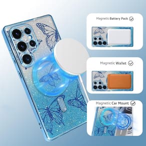 Capa de celular com glitter compatível apenas com Samsung Galaxy S25 Ultra. Recortes precisos se encaixam perfeitamente em todas as portas e permitem acessar todas as funções rapidamente. Capa de celular com ímã integrado compatível com vários dispositivos de carregamento sem fio. Fornece proteção total à prova de choque; a borda elevada protege sua tela e câmera de arranhões. - A capa de celular serve apenas para Samsung Galaxy S25 Ultra de 6,9 polegadas. Capa de telefone com anel magnético integrado compatível com todos os carregadores sem fio e carteira magnética. - PACOTE: 1 x capa de telefone, 2 x inserção de papel com glitter. O design padrão de dois estilos permite que você mude a aparência do seu telefone. Você também pode obter uma capa de celular transparente com moldura galvanizada ao remover a folha de glitter. - A capa de celular com glitter é feita de TPU macio, não se preocupe com esta capa de celular ficar fora de forma ou rachar. - Recortes precisos se ajustam perfeitamente a todas as portas; botões responsivos permitem acesso fácil. - Fornece proteção total à prova de choque; bordas elevadas evitam que sua tela e câmera arranhem.