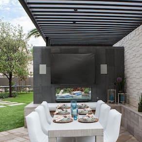 A Capa Premium TV Aberta Atrás, protege sua televisão em todos os momentos. Seu material de corino impermeável com interior flanelado proporciona proteções contra sol, chuva, maresia, poeira e intempéries. A costura industrial em nylon reforça e fornece o acabamento ao material. A parte traseira possui abertura, possibilitando a colocação da capa com a TV conectada aos cabos elétricos e suporte.