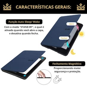 Capa com função auto-sleep/wake para economia de bateria, interior aveludado para proteção da tela. Película de plástico fosco com alta resistência a arranhões e sensibilidade ao toque.Tipo