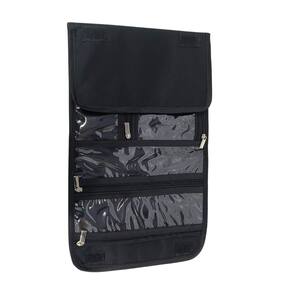 Possui 6 bolsos internos e 1 bolso externo, todos com fechamento em zíper, garantindo praticidade e segurança no armazenamento dos acessórios. Quando fechado, o porta-acessórios mede 28 cm de largura x 23 cm de comprimento. Aberto, alcança 63 cm de comprimento, oferecendo amplo espaço interno de forma compacta e funcional.