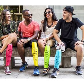 Descrição Comercial: Capas para Próteses de Perna Confetti ID Capas super coloridas para Próteses de amputações acima do joelho (Transfemurais). Um maneira diferente de tornar sua prótese mais bonita, única eexpressar sua personalidade marcante para o mundo. A Confetti ID consiste em uma cobertura cosmética para Próteses com Amputações acima do Joelho (Desarticulado de Joelho, Transfemural, Desarticulado de Quadril). Esta Capa é dividida em duas partes: Traseira e Frontal. A parte traseira da Capa é fixada a parte frontal por meio de imãs localizados na parte superior e posterior da prótese e ainda, por meio de parafusos localizados mais ao centro da capa. É tão fácil quanto mudar de roupa. A parte frontal possui um design que permite que você personalize sua capa da forma que desejar, combinando com sua roupa, estilo e fazendo a combinação que desejar.