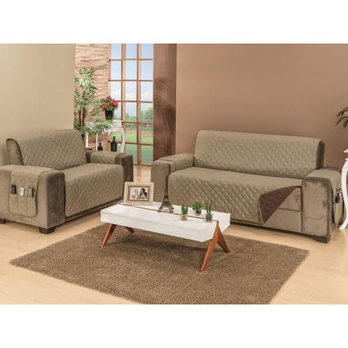 Confeccionado com tecido superior e inferior 100% microfibra, enchimento em 100% poliéster e com acabamento em viés, agora a qualidade e o conforto do seu sofá estão garantidos. Matelado em formato de losangos, tamanho 5x5, o tecido do seu protetor fica mais firme, trazendo sofisticação, beleza e conforto ao seu sofá. Além disso, outra grande vantagem deste lindo protetor é que ele é dois em um, pois ele possui dupla face e pode ser usado dos dois lados, com cada lado de uma cor, para você poder variar ainda mais o visual do seu ambiente, sempre que quiser. O protetor possui porta objetos em um dos braços do sofá, podendo ser utilizado nas duas faces. Além disso, o protetor garante alta proteção ao seu sofá, conservando o muito mais, por um tempo prolongado.