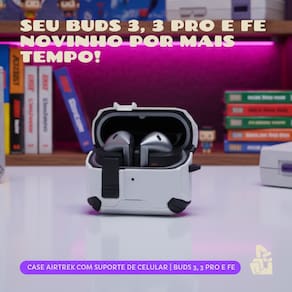 A Capa Protetora Airtrek da NERDCASE chegou para elevar o nível da proteção e praticidade dos seus fones Galaxy Buds 3, Buds Pro 3 e Buds 3 FE. Com acabamento bicolor preto e branco, essa capa possui construção em silicone rígido por fora e macio por dentro, protegendo seus fones contra quedas, riscos e impactos. O grande diferencial é o suporte adaptado para celular embutido, com base antiderrapante magnética na parte traseira, garantindo firmeza e estabilidade. Inclui mosquetão para prender com segurança na mochila ou cinto. Ideal para quem curte tecnologia, mobilidade e estilo urbano!