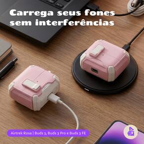 A Capa Protetora Airtrek da NERDCASE chegou para elevar o nível da proteção e praticidade dos seus fones Galaxy Buds 3, Buds Pro 3 e Buds 3 FE. Com acabamento em Rosa e Branco, essa capa possui construção em silicone rígido por fora e macio por dentro, protegendo seus fones contra quedas, riscos e impactos. O grande diferencial é o suporte adaptado para celular embutido, com base antiderrapante magnética na parte traseira, garantindo firmeza e estabilidade. Inclui mosquetão para prender com segurança na mochila ou cinto. Ideal para quem curte tecnologia, mobilidade e estilo urbano!