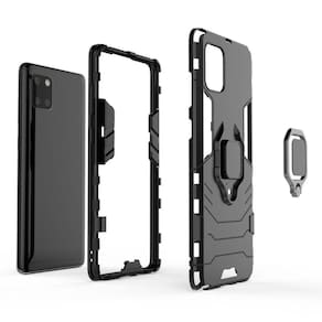Essa capa possui ainda diversas funções adicionais, como um anel de dedo e metal embutido para aderir em imã. Além disso, conta com um anel ajustável que permite o uso da capa como base, facilitando a visualização de vídeos e conteúdos no seu Galaxy Note 10 Lite.