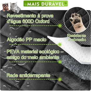 Fabricada em tecido 4 camadas, a capa é 100% à prova de arranhões, resistente à água e protege contra lama, pelos, grama e sujeira. Suporta pets de até 45 kg e é fácil de limpar: basta um pano úmido, aspirador ou máquina de lavar.
