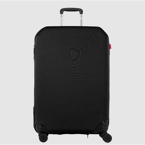 Feita em poliéster resistente e elástico com zíper completo para ajuste perfeito em malas grandes (cerca de 80x55x35 cm), é lavável, leve (300g) e fácil de remover, evitando desgastes no bagageiro.