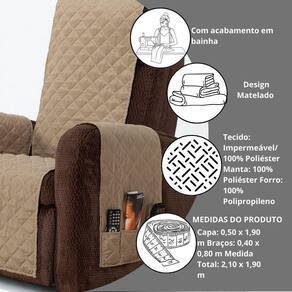 Capa Protetora de Poltrona 1 Lugar Classic Matelada com Bolsos Variação: Cáqui Seja muito bem-vindo à Atual Ecommerce, sua casa de soluções práticas com bom gosto Você que gosta de manter sua casa limpa, organizada e com um toque de elegância vai se encantar com a nossa Capa Protetora de Poltrona 1 Lugar Classic Face Única. Se a sua poltrona já está com sinais de uso, ou se você quer evitar manchas, pelos de pets ou desgaste do tempo, essa capa é a solução ideal. Além de proteger, ela renova o ambiente de forma prática e econômica. Veja o que dizem nossos clientes: comprei para minha mãe e ela adorou. A capa deu vida nova à poltrona tenho pets em casa e essa capa facilita muito na hora da limpeza. É linda, o acabamento é muito bom. Fiquei surpresa com a qualidade Especificações Técnicas: 01 Capa Protetora para Poltrona Classic Medidas da capa: 0,50 m x 1,90 m Medidas dos braços: 0,40 m x 0,80 m cada Medida total com braços: 2,10 m x 1,90 m Tecido: 100% Poliéster Manta: 100% Poliéster Forro: 100% Polipropileno Lavável à máquina modo delicado Face única com visual matelado moderno Bolsos funcionais em um dos braços Acabamento refinado em bainha de 3 meses contra defeitos de fabricação. Segurança e confiança para sua compra. Não perca essa oportunidade de proteger e renovar sua poltrona com charme e economia. Agradecemos sua visita à nossa loja Atual Ecommerce - há mais de 4 anos oferecendo conforto e qualidade nos marketplaces. Marca: Não Informado