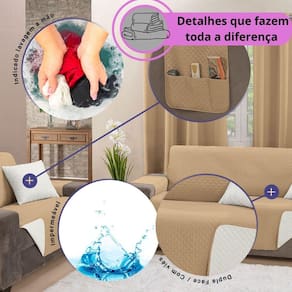 Capa Protetora de Sofá King 3 Lugares Impermeável Dupla Face Variação: Cáqui e Palha Descubra a inovação e praticidade do modelo Impermeável da MR Enxovais, projetado para oferecer máxima proteção ao seu sofá de maneira moderna e eficiente. A capa de sofá é cuidadosamente desenvolvida com um material interno que retém líquidos, prevenindo e reduzindo os impactos de possíveis acidentes no seu estofado. Sua versatilidade é evidenciada pelo design que permite o uso dos dois lados, cada um apresentando uma opção de cor distinta, permitindo que você renove o visual do seu ambiente conforme sua preferência. Os bolsos estrategicamente posicionados em um dos braços proporcionam praticidade, garantindo um espaço conveniente para armazenar pequenos objetos. Essa funcionalidade está disponível em ambos os lados da capa, oferecendo flexibilidade na disposição dos bolsos. Com acabamento em viés nas bordas, o protetor de sofá Impermeável da MR Enxovais exala sofisticação, complementando seu espaço com um toque elegante. Medidas Aproximadas Largura x Altura : 01 Protetor Impermeável Dupla face: Largura do assento da capa: 1,80 m para garantir o ajuste perfeito, meça a largura do assento do seu sofá de um braço a outro, desconsiderando os próprios braços e encontre a medida do assentos do seu sofá Capa: 1,80 x 1,90 m Braços: 0,40 x 0,80 m cada Braços Costurados Junto a Capa Medida total do produto com os braços: 3,40 x 1,90 m Material e Composição: Tecido: 100% Poliéster Manta: 100% Poliéster Forro: 100% Polipropileno Informações Específicas: - Impermeável - Com Bolsos - Dupla Face - Com Viés Lavagem: recomendada à mão para garantir maior durabilidade Informações Gerais: - Caso o líquido permaneça no protetor por um período prolongado, há a possibilidade de na estrutura do móvel; contudo, a única repercussão seria a presença de umidade, a menos que o material interno sofra danos e o líquido vaze. - Os braços, costurados junto às capas, apresentam bolsos disponíveis em um dos lados, podendo ser no lado direito ou esquerdo, variando conforme o protetor. - As fotos são representativas do produto, mas as tonalidades podem variar devido a diferenças em monitores ou lotes de tecido. - O tamanho do produto nas fotos pode diferir; verifique as medidas na descrição junto ao conteúdo da embalagem. Este produto de qualidade é confeccionado em Ibitinga, a Capital Nacional do Bordado, pela MR Enxovais. Descubra a excelência em proteção e estilo para o seu sofá com o Protetor de Sofá Impermeável da MR Enxovais. Informações Gerais: - Material visual ilustrativo; - Pode haver alterações na tonalidade da cor da imagem do produto, devido a diferença de telas de visualização; - Fique atento a à descrição do produto, podendo não apresentar todas as peças que constam no material visual; - contra defeito de fábrica.