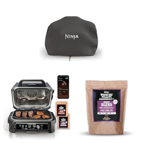 A capa Ninja Woodfire Premium XL foi desenvolvida para proteger churrasqueiras e defumadores elétricos da linha Ninja Woodfire séries OG800 e OG900 em áreas externas. O tecido sintético leve é resistente à água e aos raios UV, ajudando a preservar o equipamento contra sol, chuva, poeira e sujeira.