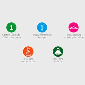 A Capa Protetora Vizapi Classic 150x55cm Branco Cinza é ideal para quem deseja aumentar o nível de proteção das roupas mais valiosas e delicadas do seu armário, com abertura na parte superior, a capa permite o uso de cabide, possui visor transparente que facilita a identificação e fechamento em zíper para facilitar a armazenagem e o transporte. Cabide adquirido separadamente. Ideal para roupas sociais, casacos, vestidos, macacão, casaco 7/8, trench coat, sobretudo, manteau e etc.