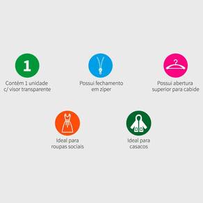 A Capa Protetora Vizapi Exclusive 150x55cm Branco é ideal para quem busca por um produto de qualidade superior e maior durabilidade, com a finalidade aumentar o nível de proteção das roupas mais valiosas e delicadas do seu armário, com abertura na parte superior, a capa permite o uso de cabide, possui visor transparente que facilita a identificação e fechamento em zíper para facilitar a armazenagem e o transporte. Cabide adquirido separadamente. Ideal para roupas sociais, casacos, vestidos, macacão, casaco 7/8, trench coat, sobretudo, manteau e etc.