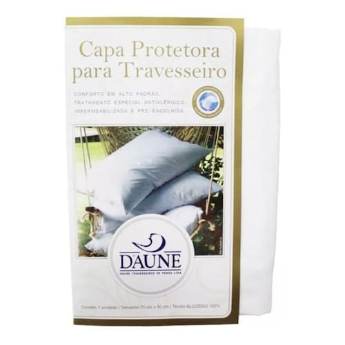 Capa Protetora Para Travesseiro Impermeável 50X70 Protegida Contra Ácaros, Fungos E Bactérias Tecido: Algodão 100% Para a sua saúde, segurança e bem estar esta capa de travesseiro recebeu uma proteção exclusiva Antigard® que é uma proteção que prolonga a vida útil dos travesseiros, impedindo o desenvolvimento de fungos, bactérias e ácaros, principais responsáveis pelos problemas de saúde. Confeccionada em tecido 100% algodão impermeabilizado não deixa que líquidos penetrem. Fácil de lavar e ainda possui zíper. Imagem meramente ilustrativa Marca: Daune Tecido: 100% Algodão impermeabilizado Medidas aproximadas: 50x70cm Fixação com elástico: Não Fixação com zíper: Não Antialérgico: Não Antiestático: Não Impermeável: Sim Cor: Branco Referência do Modelo: 100% Algodão Fornecedor: Daune Garantia do Fornecedor: Contra Defeitos de Fabricação Aviso sobre o produto: Imagem Meramente Ilustrativa Avisos Legais: Imagem meramente ilustrativa Composição/tecido: 100% algodão Ean: 7897155900100