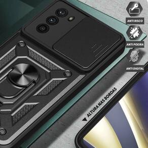 Com a Capa Capinha Case Motorola Moto G42 - Protetora Militar, você também poderá contar com algumas funcionalidades extras. Ela possui um anel de dedo e um metal embutido, que permitem aderir a capa em um imã, facilitando o uso do seu smartphone em suportes magnéticos. Além disso, o anel ajustável da capa pode ser utilizado como base, proporcionando uma melhor visualização da tela.