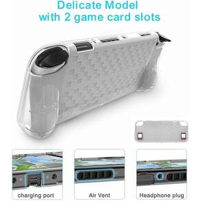 - Disponível para interruptor/interruptor Oled - Pode fornecer proteção abrangente para o dispositivo e proteger seu dispositivo de colisões diárias, arranhões, poeira e impressões digitais. - Capa protetora ergonômica pode lhe trazer uma experiência confortável e fácil de entender. - Excelente acabamento, porta jogo e fácil de transportar. - Material: Silicone - Quantidades de Compartimentos: 02 -compatível: Switch Oled