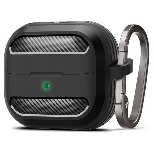 Capa protetora Spigen Rugged Armor projetada para Samsung Galaxy Buds3 Pro e Galaxy Buds 3 (2024) à prova de choque — preta fosca — Design fosco de duas peças para cobertura total e aderência inegável — [Tecnologia de polímero híbrido] Proteção sólida de camada dupla projetada para proteger contra quedas e arranhões — Mosquetão incluído para facilitar o transporte e o transporte diário. - A proteção fina permanece totalmente compatível com o carregamento sem fio - Projetada especificamente para caber na capa Samsung Galaxy Buds3 Pro e Samsung Galaxy Buds 3 (2024)