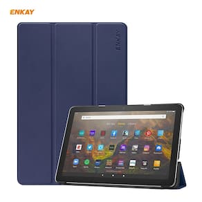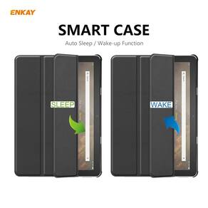 ENKAY ENK-8029 Capa de ProteçãoFire HD 10/10 Plus CaseSmart Dormancy Protective Case FunctionPlastic Bottom Case with Kickstand Protective CoverTri-Fold Wheel Pattern PU Protective Cover