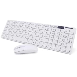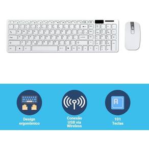 Capa silicone inclusa: kit teclado e mouse sem fio wireless 2. 4ghz 1000dpi com capa silicone o kit teclado e mouse wireless sem fio ultra slim 2. 4g é perfeito para quem busca praticidade e conforto durante o uso do computador. Com design ultra slim e cores elegantes, cor branca e o cor preta combinam perfeitamente com qualquer ambiente. O teclado possui layout em português brasil, facilitando a digitação e garantindo uma experiência mais fluída. Além disso, o mouse possui sensor óptico de 400 dpi, proporciondo precisão nos movimentos. Ambos os dispositivos são sem fio, o que elimina a necessidade de fios e permite maior liberdade de movimento. A conexão é feita através de um usb 2. 4g, que garante uma conexão estável e sem interferências. Dimensões e peso: teclado profundidade: 12,3 cm altura: 3,4 cm largura: 43,3 cm peso: 400 g