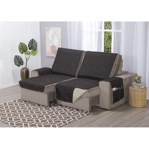 Capa de Sofá Retrátil Protetor 4 Lugares 2,20m de Assento Dupla Face Duas Cores Cor: Marrom e avelã bege Além de manter seu sofá limpo e novo por mais tempo, os protetores de sofá são grandes aliados na decoração, pois você pode combinar com cortinas, tapetes, capas de almofada e itens decorativos. Também são ideais para quem tem pets que adoram tirar um cochilo no sofá.