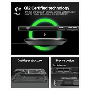 - Esta capa com certificação WPC Qi2.1 permite que seu dispositivo use o protocolo de carregamento sem fio Qi2
