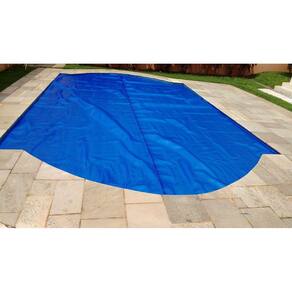 Para piscinas arredondadas a capa vai retangular, podendo ser ajustado com tesoura ou estilete no espelho da piscina